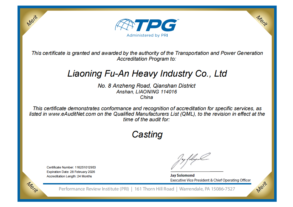 TPG鑄造證書