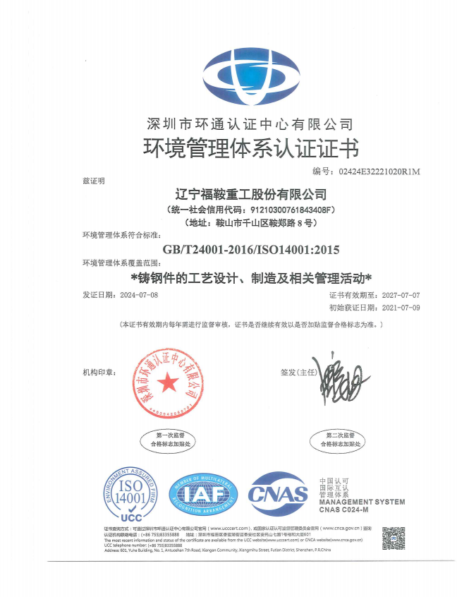 環(huán)境體系證書