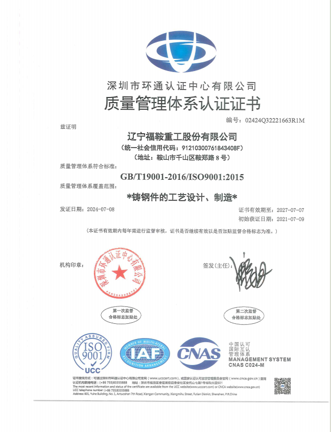 質(zhì)量體系證書
